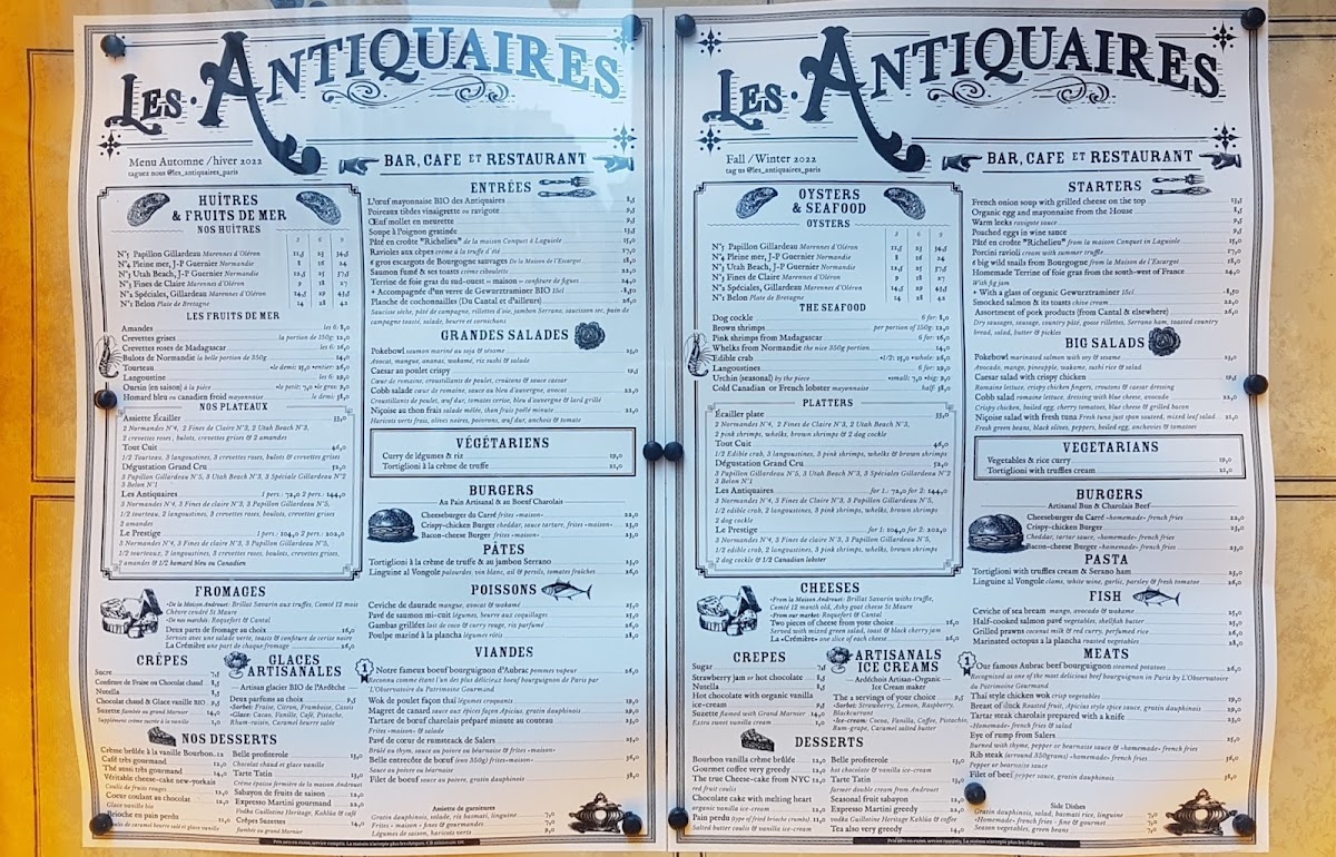Whether you’re enjoying your meal inside the cozy bistro or outside under the Parisian sky, Les Antiquaires offers more than just food; it provides an experience that warms the heart and satisfies the soul. With no reservations required and a vibrant ambiance, this bistro is a must-visit for your next culinary exploration in the City of Lights.